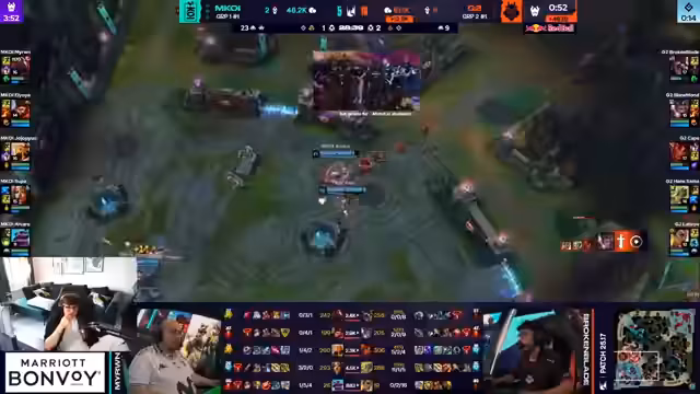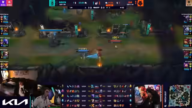 05:18:13Nachdem G2 durch einen exzellenten Teamfight den entscheidenden Vorteil holt, wird der Spielverlauf detailliert aufgearbeitet. Der Streamer lobt den 'Macher'-Status von G2s AD-Carry 'Hans Sama', der mit einem Triple Kill den Game-Changer setzt. Andererseits übt er deutliche Kritik an MKOI: Trotz einer soliden frühen Phase und einer Scaling-favorisierten Draft wichen sie im entscheidenden Midgame aus und verpassten es, ihre initiativen Tools (z.B. Kled-Ultimate) konsequent zu nutzen. Dies führte dazu, dass G2 die Kontrolle übernehmen und den Goldvorsprung ausnutzen konnte. Der Streamer hält das Midgame von MKOI für unkoordiniert und einen großen Ausrutscher, der die Serie für sie sehr schwierig machen könnte.