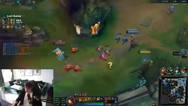 00:15:23Der Streamer spielt ein Ranked-Game mit der Kombination Lux/Alistar auf der Botlane. Er analysiert das Spielgeschehen detailliert, wobei es zu strategischen Fehlern und verpassten Chancen kommt. Eine unkoordinierte Aktion führt zum Tod mehrerer Teammitglieder und zur Schaffung eines Goldnachteils für das Gegnerteam.
