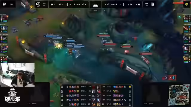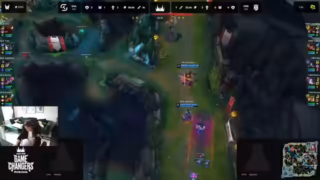02:10:56The streamer delves into SK's historical performance, noting their disappointment in recent splits and roster swaps, such as bringing in Tress. Detailed analysis of in-game events includes lane swaps, fights like Lysia's dive on bot lane, and the impact of champion abilities like Trundle's pillar. The streamer critiques Vitality's decisions, such as dying in a lane swap despite map awareness, and questions the language of the broadcast. There's a focus on SK's potential to capitalize on advantages, with mentions of future plans for clean feeds and tournament accounts to improve streaming quality.