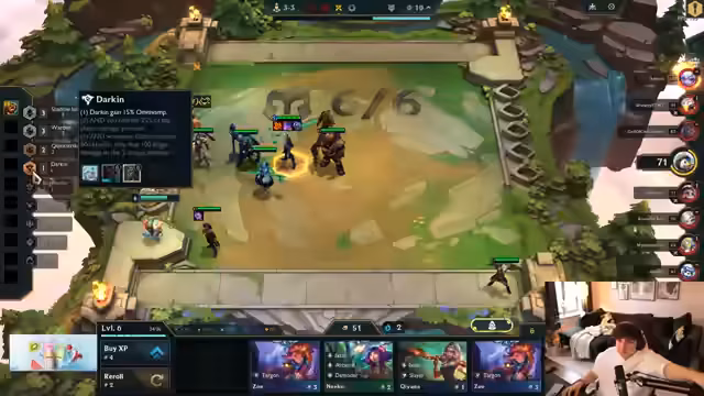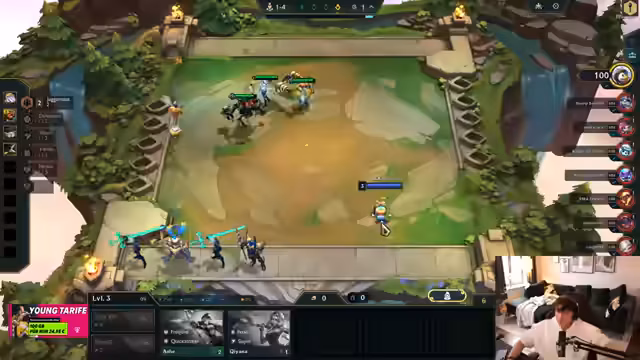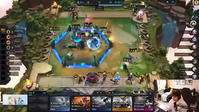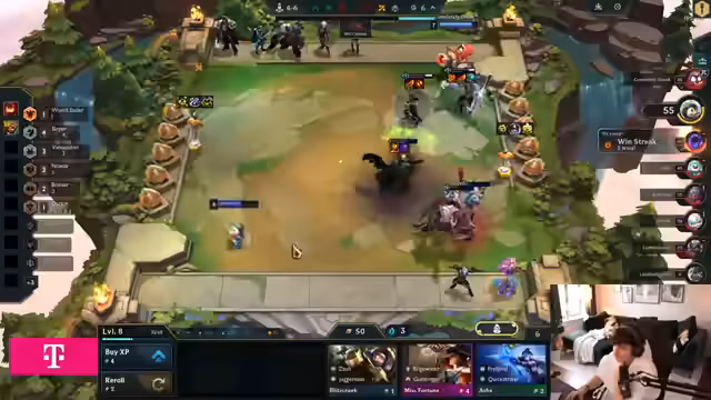 03:00:11Frustration über schwaches Board trotz Legendary-Units. Diskussion über Item-Allokation: Rageblade auf Kindred, Fiddlesticks mit Morello. Kritik an Swain als unnutzbarer Unit. Analyse der Kampfmechaniken: Frontline-Mana-Regeneration vs. Backline-Damage-Steal. Versuche, mit Dupes und Anvil-Items zu reagieren, während der Streamer über Tau-Streak-Strategien debattiert.