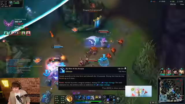 10:28:42Nachdem ein Bloons-Spiel beendet ist, wechselt der Streamer zurück zu League of Legends. Er spielt die Rolle des Supports Renata Glasc. Er analysiert das Champion-Pick und erklärt die Funktionsweise seiner Fähigkeiten, während das Team versucht, Objektive wie den ersten Drachen zu sichern und in den early game Teamfights einen Vorteil zu erarbeiten.