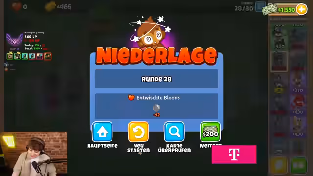 05:38:39Nach dem League of Legends-Spiel wechselt der Streamer zu einem Bloons Tower Defense-Spiel. Er erwähnt, dass sein Mitspieler Freddy nicht bei 'Stream Together' ist und sie stattdessen in die Balloons gehen. Es treten wieder technische Probleme auf, die den Spielstart behindern. Der Streamer probiert verschiedene Champions wie Irelia und Magier aus, um die Moabs zu bekämpfen, und sucht nach der besten Strategie, um die Runde zu überstehen.