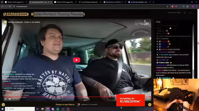 04:49:54Kategorie bester Perfect Timing Moment wird vorgestellt. Verschiedene Clips werden gezeigt, darunter ein Waschbär auf einem Ofen, ein Fischspawn in einem Spiel und eine Blitzer-App während des Fahrens. Ein Clip von Peters wird als stark beschrieben. Fehler in der Matrix von Noway und Metashi wird ebenfalls gezeigt. Streamer freut sich auf Stream Awards und äußert unter uns seine Meinung über Freddy als potenziellen Moderator.