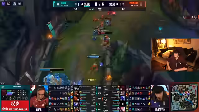 04:11:01G2 agiert defensiv wie ein Bollwerk und gibt MCOI keinerlei Möglichkeit, proaktiv zu werden oder den Spielzug zu erzwingen. Das ist beeindruckend, besonders Caps, der sehr geduldig und defensiv spielt. Dennoch gerät MCOI in einen Rückstand, der jedoch geringer ausfällt als erwartet. Trotzdem zeigt sich, dass MCOI hier kein Early Game überwinden kann, was für die Draft der nächsten Spiele relevant ist.