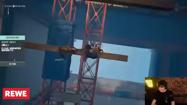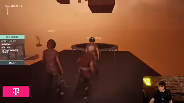 07:48:41Das Gameplay verlagert sich zu Abschnitten, die spezielle Bewegungsabfolgen wie 'Strafejumpen' erfordern, ähnlich wie in anderen Spielen. Spieler reagieren auf den Stress und die komplexen Anforderungen mit Ausdrücken wie 'Oh, oh, ich hab gescheißt' und 'Quatsch, Mama', was die emotionale Anspannung der Situation unterstreicht. Ein Rhythmus muss gefunden werden, um erfolgreich zu bleiben.