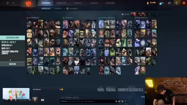 07:12:27Nach einem langen Dota-Spiel wechseln die Spieler zu Counter-Strike: Global Offensive. Sie versuchen, in der Warteschlange für ein Spiel zu landen, doch die Wartezeiten sind lang. Während des Wartens unterhalten sie sich über verschiedene Themen, von Steak-Hits bis hin zu persönlichen Anekdoten. Ein Spieler zeigt seine Erfolge im Trickshot Simulator, was den Rest der Gruppe motiviert, es selbst zu versuchen. Der Wechsel zu CS:GO soll eine Abwechslung von den langen Dota-Spielen sein und die Moral für die verbleibende Challenge- Zeit aufbessern.