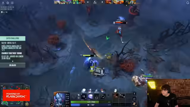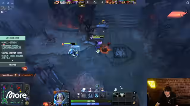 09:17:45Nachdem die Moral durch die Aram-Niederlagen gesunken ist, wird das Spiel Chained Together vorerst ausgelassen. Stattdessen wird Dota 2 gespielt, um einen Ausgleich zu schaffen und da es Bock darauf besteht. Die Performance im Dota-Spiel ist anfangs holprig, aber das Team zeigt eine schnelle Verbesserung im Laning. Besonders Crystal Maiden als Support wird als effektiv gelobt.