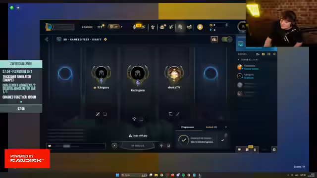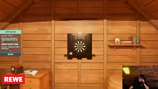 00:10:27Es wird mit der Vorbereitung der Win-Challenge begonnen. Der Streamer zeigt eine lange Liste mit Spielen, die sie absolvieren müssen. Es entstehen Diskussionen über die Machbarkeit und den Zeitrahmen der Challenge. Die Teilnehmer einigen sich darauf, mit Counter-Strike zu starten, da ein späterer Versuch, Flex-Queue in League of Legends zu finden, scheitert. Die Challenge soll als Bestrafung bei einer Niederlage die Durchführung einer 30-minütigen Yoga-Session enthalten, was der Streamer als sehr peinlich empfindet.