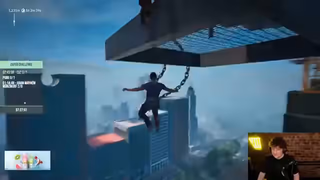 07:36:24Das Team beginnt mit der Chain Together Challenge, einem koordinierten Plattformer-Spiel. Ihr Ziel ist es, gemeinsam eine Kette von Haken zu nutzen, um bis in 2000 Meter Höhe zu klettern. Sie teilen die Aufgabe in Abschnitte auf: erst bis 1500 Meter und dann den Rest. Die Herausforderung besteht in der präzisen Synchronisation und der schnellen Reaktion der Spieler. Einige haben Schwierigkeiten mit der Technik und der Geschwindigkeit. Der Chat wird für Tipps und Hilfestellungen genutzt, um die Chancen auf Erfolg zu erhöhen und den Zeitrahmen der Challenge einzuhalten.