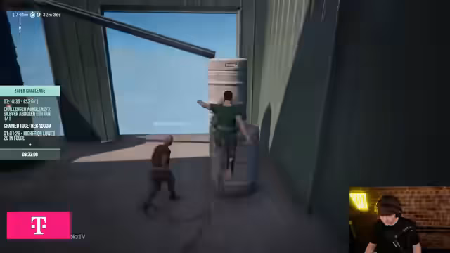 04:27:23Das Team zeigt sich als gut eingespielte Einheit, da Jan besonders saubere und effiziente Bewegungen in dem Spiel zeigt. Es müssen komplexe Rätsel gelöst und Sprünge von Plattform zu Plattform gemeistert werden. Die Musikauswahl, insbesondere eine 'Ditchery-Do-Playlist', sorgt für die richtige Stimmung. Bei einem kritischen Versuch fällt ein Spieler in eine Schlucht, doch das Team zeigt durch ruhige Calls und koordinierte Aktionen, dass sie auch unter Druck eine starke Einheit bilden und sich erfolgreich aus der Notlage befreien können.