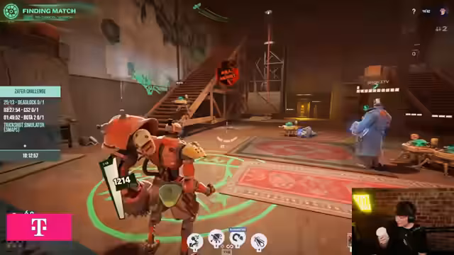 10:30:26Die Einführung in Deadlock wird vertieft. Der Streamer erklärt die Steuerung, wie 'Sliden' unendliche Ausdauer verbraucht und für schnelle Bewegungen genutzt werden kann. Die Funktion des 'Parryns' (F zum Blocken) wird erläutert. Am Beispiel des Champions 'Bebop' wird eine grundlegende Kombo vorgeführt: den Gegner haken, eine Bombe platzieren und ihn mit dem Uppercut in den eigenen Tower stoßen. Der Unterschied zu League of Legends wird betont, da der Last Hit auf Minions irrelevant ist.