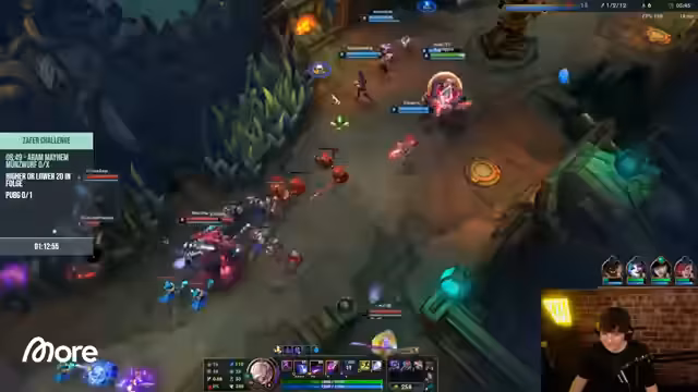 10:59:00Im laufenden Deadlock-Aram-Spiel wird die Taktik erklärt. Der Fokus liegt darauf, den gegnerischen Turm zu zerstören, da der erste Turmfall einen Punkt bringt. Es wird ein Warnung vor starken gegnerischen Champions wie dem 'Wolf' ausgesprochen. Der Streamer versucht, mit seiner Ultimate nahe am gegnerischen Turm zu stehen, um einen Teamfight zu initiieren. Er empfiehlt, defensiv zu spielen und sich hinter dem eigenen Turm aufzuhalten, wenn man stark unterlegen ist, und kritisiert den hohen Spam von nicht verstandenen Items und Fähigkeiten.