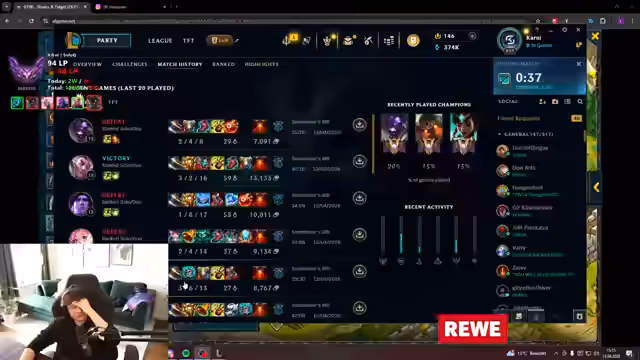 03:59:13Es wird die Spielleistung der ADC-Position im Vergleich zum Vorjahr analysiert, wobei Verbesserungen durch vermehrten Content-Konsum und Coaching vermutet werden. Die aktuelle Phase der Season wird als schwierig beschrieben, da der Streamer in einen Slum geraten ist, aber versucht, dies mit einem entspannten Ansatz und dem Testen neuer Champions zu überwinden. Die negative Stimmung (Tilt) wird bei Streamer und Chat gleichermaßen erkannt und als Ziel für den Stream genannt, um den Spaß wiederzufinden.