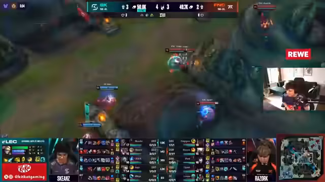 06:17:03Der Streamer betont, dass Fnatic der 'haushohe Favorit' ist und SK nicht mithalten kann. Fnatic ist einer der 'erfolgreichsten, traditionsreichsten und größten Orks in Europa'. Drei Minuten 'Seele' vergehen, und jeder hat Sonya's. Für SK ist es sogar 'älter'. Er kritisiert das Fehlen von Mikael auf Miki und fragt, ob sie den 'Fisch jagen' sollen. Der Estrel ist ein 'Monster', und er ist besorgt, wie sie teamfighten wollen, da Viktor ohne 'Hut' und 'Flash' anfällig ist.