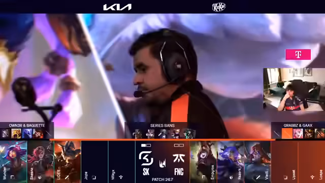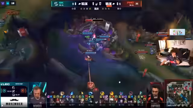 08:10:26Der Streamer analysiert im Detail die gegen Fnatic verlorene Best-of-Three-Serie. Es wird angemerkt, dass SK Game 2 durch einen frühen Solo-Kill in Minute 3 und einen schwachen Draft verlor, während andere Parts der Leistung in Ordnung waren. Fnatics Spielstil wird als 'hart trollend' beschrieben, da sie mit einem 6000er Gold-Vorsprung im frühen Spiel noch verlieren konnten. Die Teamfight-Koordination und die Dragon-Setups werden als problematisch für SK identifiziert.