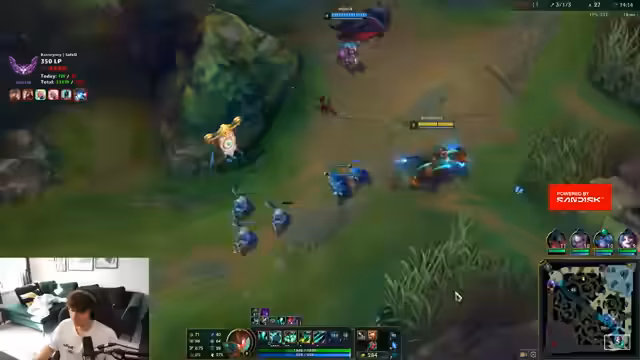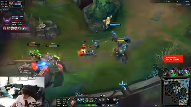 03:38:51Der Stream beginnt mit einer intensiven Phase im Spiel League of Legends. Die Situation auf der Bot-Lane ist ideal, während die anderen Lanes, besonders Top und Mitte, unter starkem Druck stehen und zurückgefallen sind. Der Streamer analysiert die Situation sorgfältig und vermeidet es, sich zu früh zu zeigen, um den Gegnern keine Informationen über seine Position zu geben. Er betont, wie gut die aktuelle Bot-Lane läuft und stellt gleichzeitig fest, dass sein Team strategisch vorgehen muss, um das Spiel zu wenden und dem Gegner keine Vorteile zu bieten.