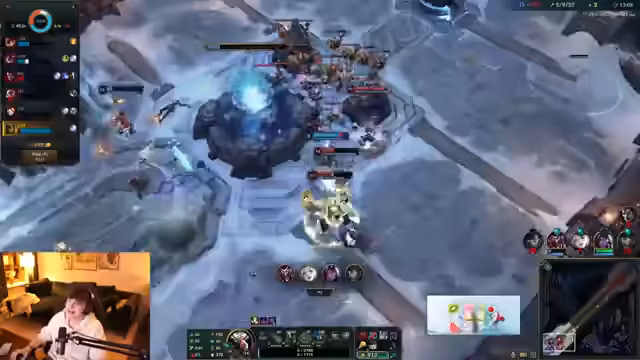 09:38:01In der Endphase des Spiels konzentriert sich das Team auf das kontrollierte Vorgehen auf der Map. Das Spiel wird langsam gespielt, wobei bestimmte Sidelanes genutzt werden, während das Team koordiniert Objektive wie Drake und Herald angreift. Die Kommunikation intensiviert sich, um Vision zu sichern und gegnerische Bewegungen vorherzusehen. Ein Fokus liegt darauf, den gegnerischen Jax zu isolieren, um ihn bei gleichzeitigem Schutz der eigenen Lanes zu neutralisieren und den Vorteil zu sichern.