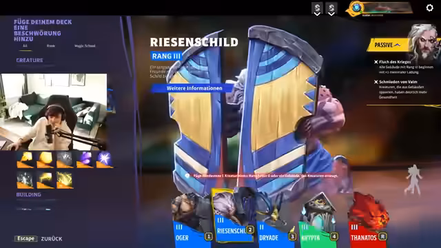 01:54:29Nachdem das erste Spiel verloren wurde, werten die Spieler die Runde aus. Sie erkennen, dass ihre Gegner, insbesondere ein einzelner Spieler, einen sehr hohen Level und viele Kills hatte. Der Fokus verlagert sich auf den Deckbau für die nächste Runde. Kani experimentiert mit neuen Decks und Einheiten wie Druaden und Riesenschild-Einheiten, um eine bessere Frontline zu bilden. Die strategische Ausrichtung ändert sich von aggresiven Spells hin zu mehr Tank- und Support-Einheiten, um dem hohen Schadensoutput der Gegner besser standhalten zu können.