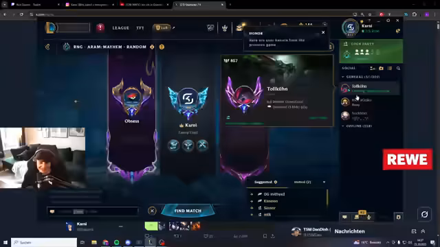 05:10:17Der Streamer erinnert sich an ein vergangenes Preview-Event von Riot, bei dem er und andere Content Creator auf sehr hohem Niveau gegen normale Spieler gespielt haben. Es wurde sogar so tryharded, dass sich niemand mehr ihnen stellen wollte. Anschließend spricht er über seinen anstehenden Abend. Er streamt bis 19 Uhr und gibt dann einen Hinweis auf eine Ankündigung um 18 Uhr, ohne sie zu verraten. Das Stream-Thema wird beendet, nachdem er einen letzten Sieg im 'Aram Mayhem' einfahren konnte.