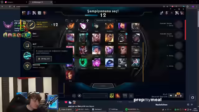 01:30:12Der Streamer beginnt mit einer Phase intensiver Gameplay-Kommentare. Er diskutiert die Qualität seiner Mit- und Gegenspieler, wobei er wiederholt die mangelnde Fähigkeit seines Supports kritisiert. Die Situation wird als unwinnbar beschrieben, mit Bemerkungen zu einer Lücke (Gap) zwischen den Spielerfähigkeiten. Die Stimmung ist frustriert, geprägt von Kommentaren über schlechtes Matchmaking und die Herausforderung, im türkischen Server-Ranking zu bestehen.