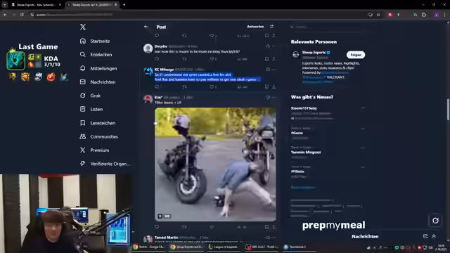 02:17:12Nach mehreren Stunden Gameplay und mehreren Niederlagen wertet der Streamer die Situation aus. Er beschreibt ein Muster, in dem seine Teams ständig 'gegriefed' (sabotiert) werden, indem die Solo-Lanes schnell verlieren und der Jungler nicht eingreift. Obwohl die Gegner als schlecht eingeschätzt werden, ist das Spielmaterial aufgrund des teaminternen Verhaltens nicht zu gewinnen. Die Frustration über den Tag wird offensichtlich.