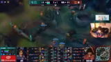 04:39:26O começo do trecho foca na análise de um jogo onde SamD é comparado a uma serra circular cortando GiantX. Há discussões sobre a possível manipulação de visualizações no Twitch, com especulações se as 50 mil visualizações foram alcanhadas através de apresentação na página inicial internacional. O(streamer) menciona o receio de que Twitch os promova apenas para o público alemão. Há também detalhes do jogo em curso, com menções ao Lucian usando Cloud Soul e a discussão sobre a importância de certos picks e contra-picks no meta atual.