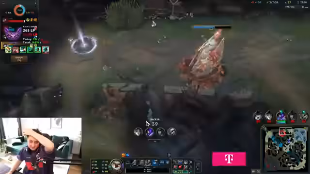 00:09:49Der Streamer zeigt zunehmende Frustration über die Spielqualität in Master-Elo. Er kritisiert insbesondere den ADC-Spieler, der als sehr schwach beschrieben wird und mehreren vermeidbaren Toden zum Opfer fällt. Der Streamer vergleicht den Spieler mit einem Silberspieler und stellt fest, dass solche Leistungsdifferenzen bei der geringen spielerischen Kontrolle, die er als Support habe, frustrierend sind. Er gibt zu, selbst mehrere Tode zu haben, betont aber, dass dies unangemessen sei und versucht, das Game durch strategische Spielweise noch zu gewinnen.