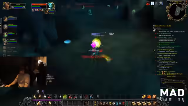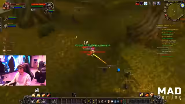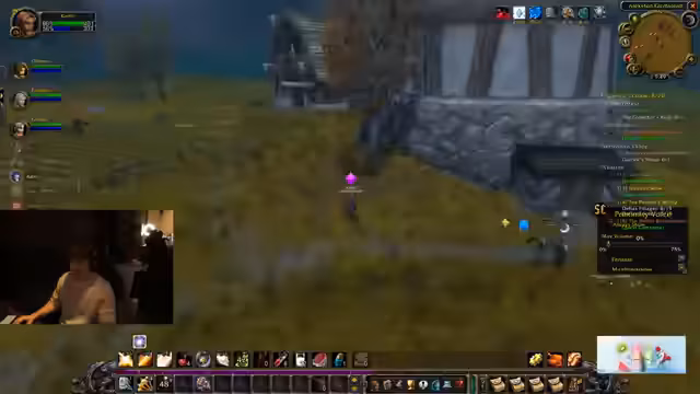07:56:12Der Raid ist in vollem Gange, die Gruppe kämpft durch Westfall und eliminiert Gegner massenhaft. Es wird Wert auf eine effiziente Aufteilung der Beute (Loot) gelegt, um Konflikte zu vermeiden. Der Streamer agiert sehr proaktiv, tötet Mobs und sichert sich Drops, während er gleichzeitig andere Gruppenmitglieder, die in Gefahr geraten, mit Heilen und strategischen Fähigkeiten wie "Blessing of Freedom" unterstützt. Es wird viel Kommunikation über das Vorgehen und die Zielmarkierung im Kampf benötigt.