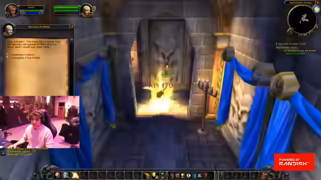 09:37:02Der Streamer erkundet die Westfall-Region, stößt aber auf Schwierigkeiten mit einem unpraktischen Gilden-Map-Add-on. Es kommt zu einer Diskussion über den Verkauf von Quest-Upgrades, wobei der Streamer bereits seine Rüstung zurückgekauft hat. Der Fokus liegt auf dem Sammeln von Quest-Items, während die technische Funktionsweise des Spiels, wie die Pet-Schooling für Warlocks, erläutert wird. Der Streamer sucht den Weg zum Warlock-Lehrer in Sturmwind, um neue Rezepte zu lernen, und sammelt gleichzeitig Quests ein, um das Gebiet vollständig abzuschließen.