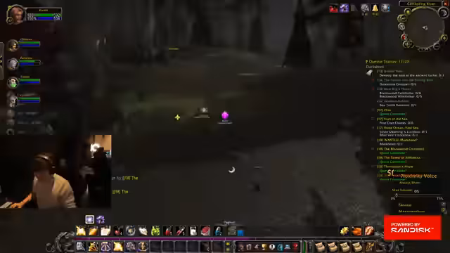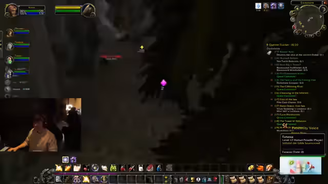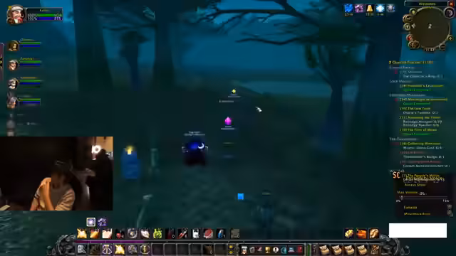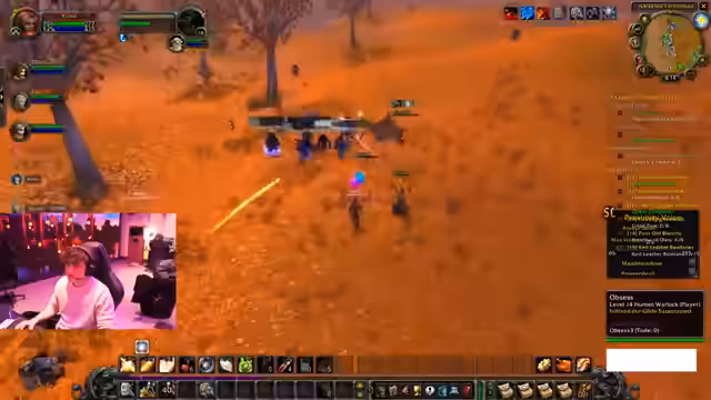 06:43:30Die Gruppe ist in Loch Modan unterwegs und erledigt dort Quests. Der Streamer hat durch das Töten von Monstern fast ein komplettes Level gemacht. Die Player werden von Viewern um Hilfe gebeten und die Group size wird unübersichtlich durch das Gilden-Add-on.