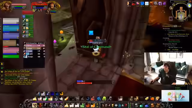 04:10:06Im weiteren Verlauf der Dungeon-Run werden spezifische Taktiken für verschiedene Mob-Typen erörtert. So wird die Entscheidung getroffen, Fokus-Mobs mit Seal of Justice zu bekämpfen, um das Fliehen zu verhindern, und Chain-Pulling für größere Effizienz zu nutzen. Das Thema Loot-Management wird angesprochen, wobei der Streamer erklärt, welche Items wie Jade oder Citrine für späere Quests oder Berufe benötigt werden. Er entscheidet sich, diese Items zu behalten oder gezielt für Mitspieler freizugeben.