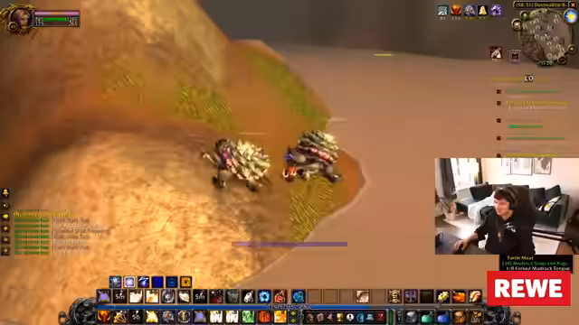 05:13:24Die Gruppe beschließt, nach Abschluss der Quests in Theramore nach Kalimdor zu reisen, um dort die Kochquest fortzusetzen. Die Reise wird als beschwerlich beschrieben, da es kaum Flugpunkte gibt und die Landschaft hügelig ist. In Tanaris angekommen, beginnt die Gruppe sofort mit der Jagd auf die benötigten Rieseneier und Muscheln für die Quest. Dabei wird deutlich, dass die Area anspruchsvoll ist und es zu ungewollten Aggro-Zonen von mehreren Gegnern kommen kann.