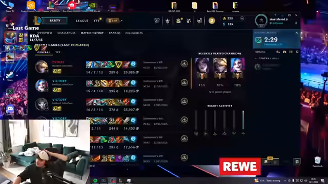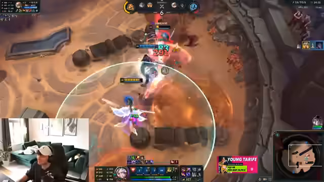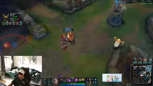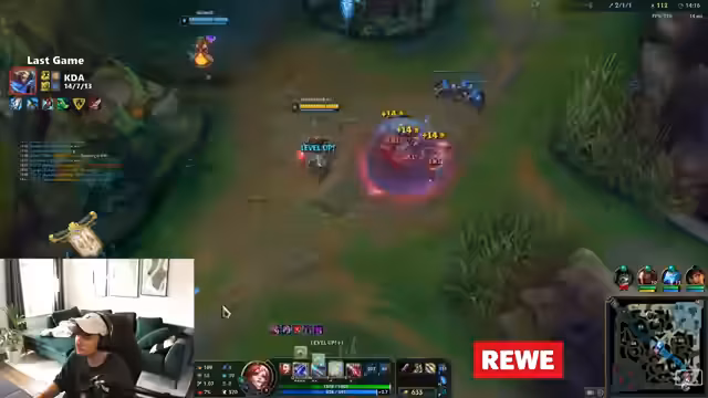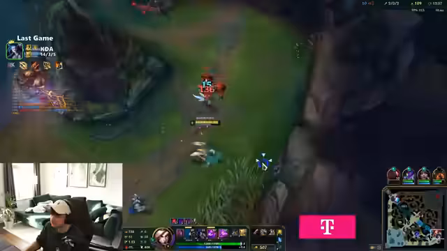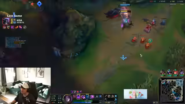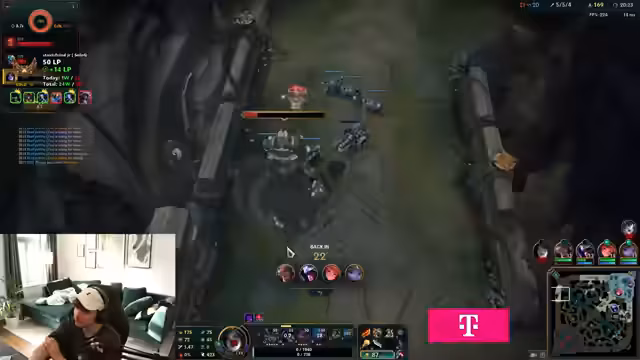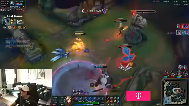 02:00:11Der Streamer drückt seine Frustration über das Fehlen von Hilfe und die schlechte Kommunikation im Team aus. Er kann seine Keybinds nicht richtig nutzen und ärgert sich über die gegnerische LeBlanc, die seit 10 Minuten zum 'FF' (Forfeit) aufruft, obwohl sie selbst schlecht spielt. Er erwähnt, dass er noch nie absichtlich einen Red Buff aufgenommen hat und ist überrascht von seinem eigenen Schaden. Er ist zuversichtlich, ein guter ADC zu werden und genießt das Spiel. Er erkennt, dass das Team im späteren Spielverlauf stark skaliert, befürchtet aber, dass nur der gegnerische Yone ihn töten kann.