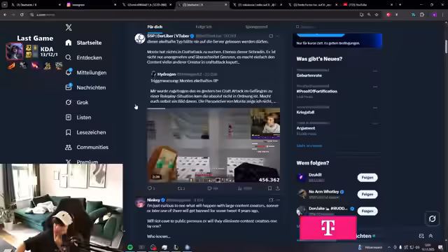 05:19:58Es wird eine Diskussion über einen Bann eines brasilianischen Content Creators durch 'Drew Levin' auf Twitter geführt. Der Content Creator wurde für alle Riot Games Titel geblacklistet und alle seine Accounts wurden Vanguard-gebunden, weil er onstream Gewaltandrohungen gegen das Riot-Headquarter geäußert hatte. Die Community ist gespalten, wobei einige den Bann als unfair empfinden, während andere ihn als gerechtfertigt ansehen, insbesondere im Hinblick auf die geänderten 'Terms of Services' von Riot, die auch Äußerungen außerhalb des Spiels sanktionieren. Der Bann wird als wichtiger Schritt gegen toxisches Verhalten in der League of Legends Community betrachtet, insbesondere bei hypertoxischen Content Creatorn. Die Situation wird als 'Big W' für die Community und als 'holzsam' (erfreulich) beschrieben, da der gebannte Content Creator sich als 'Jammerlappen' entpuppt hat.