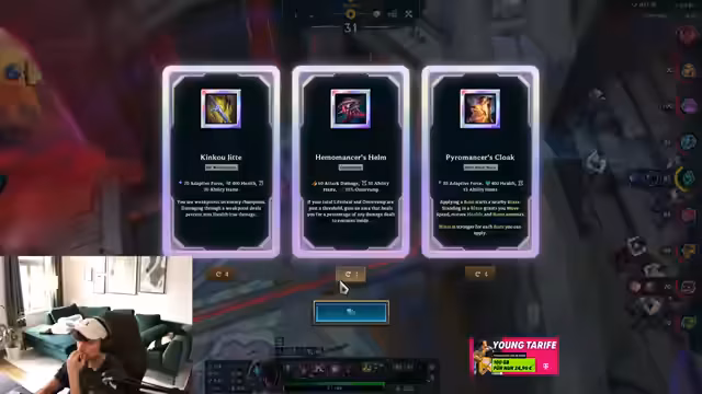 03:42:19Der Streamer glaubt, dass ihm ein 'terrible Augment' empfohlen wurde, da er keine AD-Items mit Kayle kaufen sollte. Er muss nun 'Kraken Slayer' gehen. Er bemerkt, dass Kayle mit AP skaliert, er aber null AP hat. Er fragt, ob alle Gegner Magic-Damage-Lastig sind, außer Afiri.