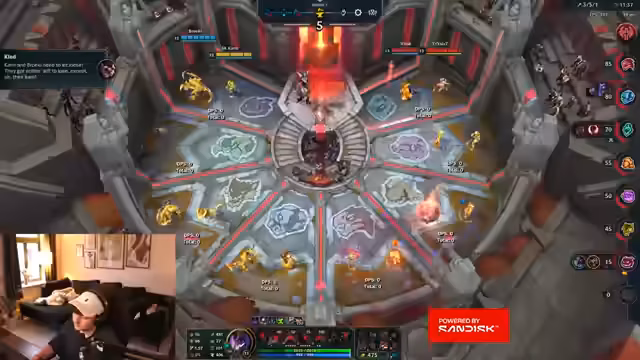 01:52:29Die SK Gaming Doku ist auf dem YouTube-Kanal von SK Gaming verfügbar. Im Spiel diskutiert der Streamer eine knappe Situation, in der er beinahe von einem Bounce getötet worden wäre. Er plant einen Recall, um Items zu kaufen und seinen Shutdown nicht an den gegnerischen Mundo abzugeben. Er wundert sich über seine gute Farmleistung in einem eigentlich schwierigen ADC-Matchup und scherzt, dass er nur warm werden müsse, um Diamond zu erreichen. Er überlegt, ob er Kull kaufen sollte, entscheidet sich aber dagegen und ist zufrieden mit seinem Build. Er ignoriert die 'Stimmen', die ihm raten, anders zu spielen, und möchte Brück, Isola und Gumayushi stolz machen.