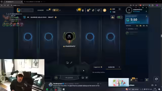 00:01:12Der Streamer begrüßt seine Zuschauer am Morgen und äußert sich direkt zu einem bevorstehenden Turnier bei Kruk, dessen Details ihm noch unklar sind, was ihn leicht frustriert. Er erwähnt, dass das Turnier um 15 Uhr starten soll, aber weitere Informationen wie ein Turnierbaum fehlen. Parallel dazu kämpft er mit technischen Problemen mit dem Elgato Control Center, das sich als schlecht programmiert erweist. Er berichtet von seinem erfolgreichen Aufstieg in League of Legends von Silber 1 auf Gold 2 am Vortag, wobei er seine eigene gute Leistung hervorhebt, abgesehen von verlorenen Smolder-Spielen. Zudem äußert er sich als Anno-Enjoyer, der solche Spiele jedoch lieber bei anderen Streamern verfolgt, anstatt sie selbst zu spielen. Ein weiteres Thema ist ein bevorstehendes Arena-Turnier, bei dem er überrascht ist, mit Brückchen im Team zu sein, obwohl er davon ausgeht, schnell auszuscheiden.