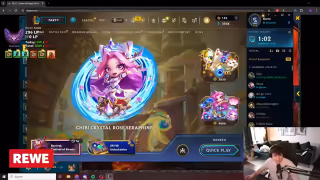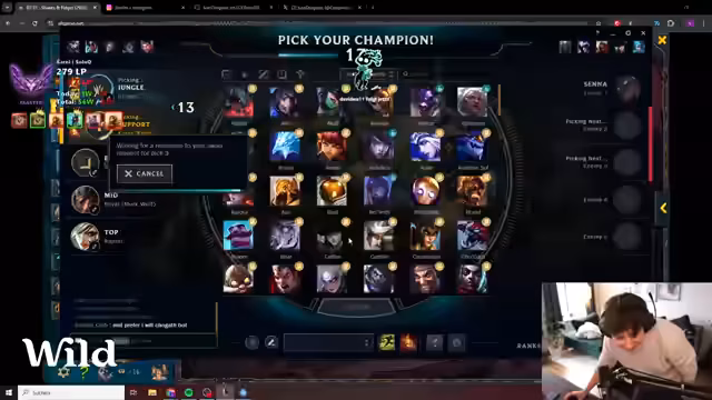 00:03:06Nach der Auswahlphase des Drafts wird der Seed Ezreal gebannt, was den Streamer neugierig macht, welche Picks folgen. Er entscheidet sich für einen Top-Swap und wählt Aphelios, während sein Duo-Laner Lulu mit Caitlyn und Ezreal im Bot-Lane startet. Es besteht Unsicherheit, ob ein Support wie Nami oder Leona gepickt wird. Die Strategie des Teams, LP zu verdienen, wird klar definiert, wobei der Streamer betont, dass es darum geht, abzuräumen und gut zu performen.