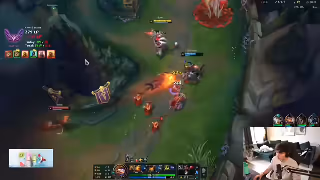 01:13:08Zu Beginn des Abschnitts konzentriert sich der Streamer auf die aktuelle Spielsituation in League of Legends, insbesondere auf die Champions Jinx, Milio und Cho'Gath. Er analysiert deren Cooldowns, wie den Flash und die Ultimate, um strategische Entscheidungen zu treffen. So erkennt er, dass Milio keinen Flash besitzt und überlegt, den Fokus auf ihn zu legen, während Jinx ohne Flash ein einfaches Ziel wäre. Cho'Gath bleibt ebenfalls im Blickfeld, da dessen Fähigkeiten, wie Goops, für den kommenden Fight entscheidend sein könnten. Die Analyse zeigt, wie er die Schwächen des Gegners ausnutzt, um Vorteile zu erzielen.