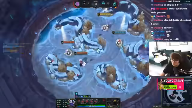 10:50:00Der Stream beinhaltet Kooperationen mit anderen Content-Creators wie Freddy und Kroko, wobei gemeinsame Gameplay-Sessions in Dota 2 diskutiert werden. Teamkämpfe gegen gegnerische Helden wie Pudge, Witch Doctor und Dark Willow werden analysiert, mit Fokus auf Swaps, Stuns und räumlicher Koordination. Erfolgreiche Momenten umfassen die Überlistung von Gegnern durch unsichtbare Moves und gut platzierte Ultimates. Es wird die Bedeutung von Teamwork und Kommunikation unterstrichen, um die Herausforderungen in Spielen mit erfahrenen Spielern zu meistern, während der Streamer seine Fähigkeiten mit Charakteren wie Alchemist verfeinert.