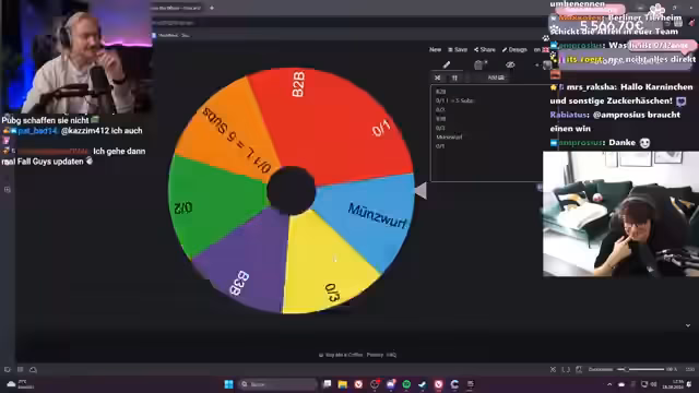 12:09:20Nach Geoguessr wird der weitere Spielplan besprochen, einschließlich PUBG und League of Legends. Es wird entschieden, ein Rad zu drehen, um den nächsten Challenge-Modus per Münzwurf zu bestimmen. Die Dauer des Streams wird evaluiert, mit der Hoffnung, die Challenge vor dem Schlafengehen abzuschließen, abhängig von den Ergebnissen in PUBG.