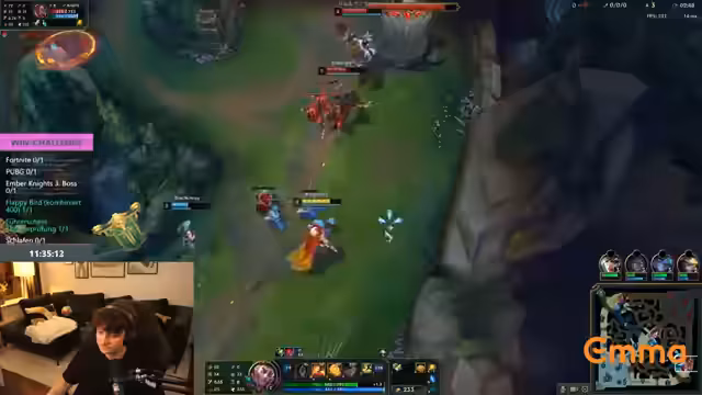 13:01:56Das Team plant einen Kampf im River und diskutiert, ob sie den Drachen anschließen können. Ein großes Problem stellt der gegnerische Mundo dar, der als extrem tankerfordert und ohne Anti-Heal kaum zu besiegen ist. Die eigene Komposition aus Burst-Champions wird als zu schwach gegen die tankigen Gegner wie Mundo und Alistar beschrieben, was zu einer nihilistischen Stimmung führt.