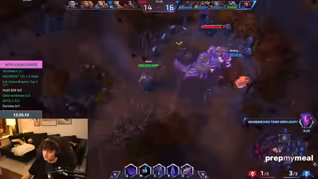 13:52:19Nach einem schnellen, eindeutigen Sieg in Heroes of the Storm wird die Gewinnstimmung genossen. Die strategische Entscheidung, zu roamen und die gesamte Karte zu kontrollieren, wird gelobt. Während sie auf den Anschluss des Teammitglieds Kroko warten, das technische Probleme hat, wird die Aufteilung für das nächste Spiel besprochen: Jaina und Muradin für eine Gruppe, während die anderen Sidelines übernehmen. Parallele Snack-Organisation (hartgekochte Eier) wird kurz angesprochen.