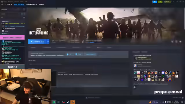 12:13:18Kroko wird für Fortnite eingeladen, wobei Account- und Online-Status-Diskussionen folgen. Es wird über eine Pause für Toilettenbesuche gescherzt. Die Gesamtdauer des Streams wird besprochen, mit der Einschätzung, dass PUBG entweder treu ist oder unmöglich, was die Chancen auf einen Abschluss vor Schlafengehen beeinflusst.