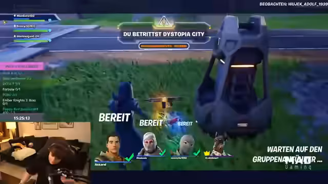 16:22:49Die Session beginnt mit einer Diskussion über einen Clip, in dem ein Mitspieler als 'Hurensohn' bezeichnet wurde, was später als unangemessen eingestuft wird. Es folgt ein Wechsel ins Fortnite-Spiel, wo technische Probleme mit dem Launcher und erste Gameplay-Erfahrungen thematisiert werden. Dabei geht es um die Herausforderung, nach einer langen Challenge zu spielen, und die Reflexion über Beleidigungen im Gaming-Kontext. Die Atmosphäre ist locker, mit Fokus auf das Spiel selbst.