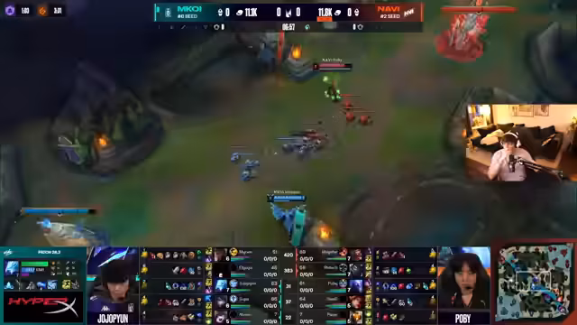 08:10:41Die Serie endet für Navi deutlich mit 0:2. Der Streamer urteilt, dass M.Koy "komplett den Boden gewischt" habe und Navi sowohl mental als auch in der strategischen Umsetzung nicht auf der Höhe war. Besonders die Performance der Botlane von Navi wurde als "bodenlos" und eine "monströse Bot-Gap" beschrieben. Die Serie wird als "Warm-Up" für die Hauptereignisse der Playoffs tituliert. Das Gespräch lenkt sich daraufhin zur nächsten, wichtigeren Serie zwischen G2 und KC. Hier wird erwartet, dass G2 einen Draft voller "Snap-Engage" Champions wählt, während KC mit Champions wie Orianna und Taliyah starke Antworten und viel Disengage hat. Der Favorit liegt bei KC, da sie in den letzten Wochen stabiler auftraten.
