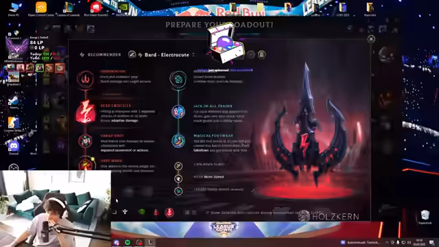 00:00:35Der Stream beginnt mit Begrüßungen der Zuschauer. Der Streamer erwähnt, dass er ein gesponsertes Headset trägt, welches den Akkustand beim Einschalten ansagt. Für den heutigen Tag ist ein Bard OTP Tag geplant, wobei die schwierigste Lane gegen Karma gesehen wird. Der Streamer berichtet, dass er FPS-Drops durch das Discord-Overlay festgestellt hat und dies nun deaktivieren wird, um die Performance zu verbessern, zusätzlich wird auch das laufende Spotify-Musikvideo als mögliche Ursache identifiziert.
