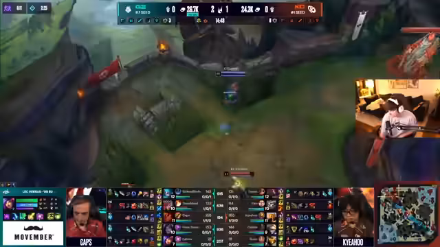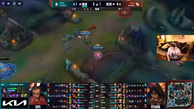 08:45:05G2 startet die zweite Partie gegen KC fulminant und kontrolliert die Anfangsphasen des Spiels vollständig. Innerhalb der ersten 13 Minuten bauen sie einen massiven Goldvorsprung von 2.600 Gold heraus, nehmen den ersten Dragon und erbeuten den Herald. Der Analyst lobt G2s strategisches Vorgehen: Sie agieren proaktiv, nutzen ihr Overkill-Potenzial und zwingen KC in Verteidigungspositionen. Besonders der Pick von Sion auf Top-Lane wird als stark bewertet, da er G2 ermöglicht, aggressiv zu pushen und zu kontrollieren. Der Mid-Lane von Caps mit Azir wird ebenfalls als ausgesprochen stark angesehen, da er spät im Spiel eine entscheidende Rolle als "Late Game Absicherung" spielen wird.