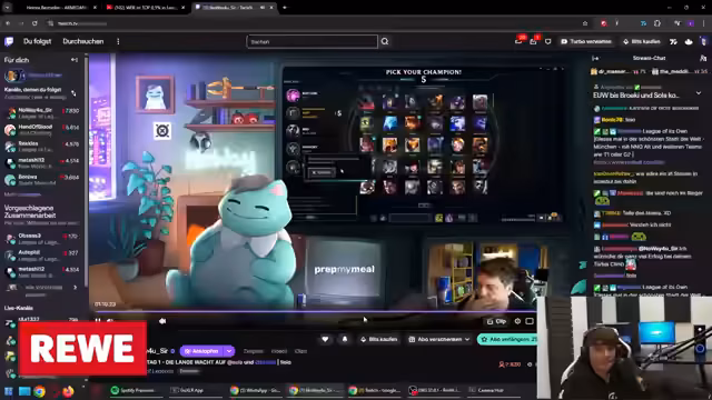 03:14:17Nach langen, erfolglosen Reparaturversuchen wird der Stream vorzeitig beendet. Der Sound in League of Legends funktioniert weiterhin nicht, und auch ein Wechsel der Szenen oder ein neuerlicher Systemneustart brachten keine Lösung. Der Streamer verabschiedet sich frustriert, aber resigniert von seinem Publikum, mit der Zusage, sich in etwa einer Stunde wieder zu melden. Er weist seine Zuschauer an, stattdessen dem Stream seines Kollegen Freddi zu folgen, der ebenfalls unter technischen Problemen leidet.