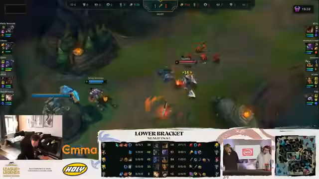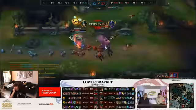 02:21:41Die Spieler konzentrieren sich auf den Kauf von Items, um ihre Stärke zu maximieren. Es wird über die Wahl zwischen 'Magie durchdringen' und 'Anti-Heal' diskutiert, wobei 'Magie durchdringen' bevorzugt wird. Das Team plant, die Bot-Lane zu pushen und sich dann zusammenzuschließen, um weitere Kämpfe zu initiieren. Es wird eine unglückliche Situation auf der Bot-Lane analysiert, bei der ein Spieler gefangen wurde, aber das Team bleibt zuversichtlich und lernt aus den Fehlern. Die Spieler werden darauf hingewiesen, dass die Gegner gerne in Büschen Fallen stellen, und diese Information wird für zukünftige Kämpfe genutzt. Das Team bereitet sich auf das Lower-Bracket-Finale vor, bei dem es um 10.000 Euro geht, und plant, die Gegner zu scouten.
